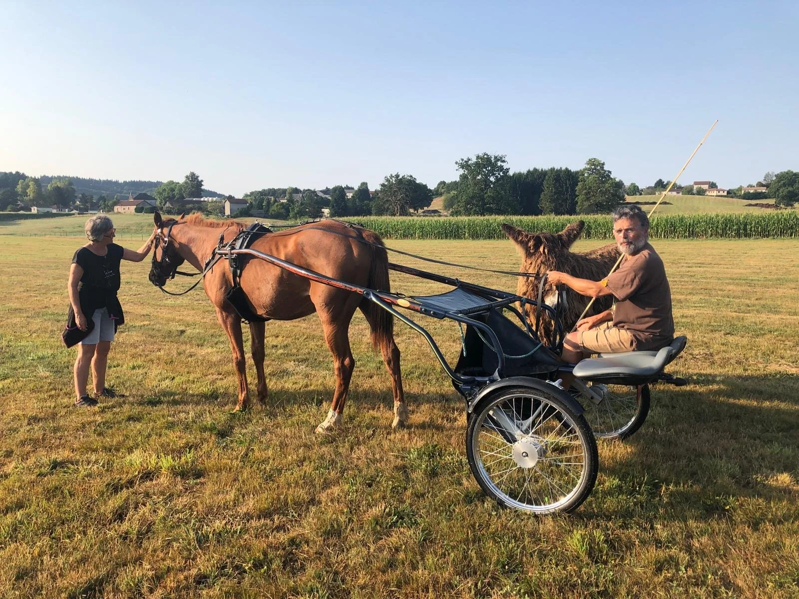 Entre temps, alors que je faisais les contrôles d’une compétition d’endurance attelée, j’ai rencontré François Simon et son appareil qui faisait un peu figure d’OVNI au milieu des voitures hippomobiles habituelles! Son road-cart nous a séduit par sa légèreté, son confort, sa maniabilité et le temps réduit de préparation.