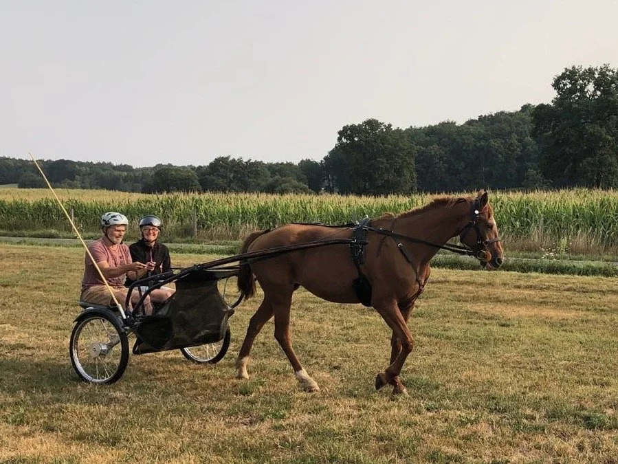 Nous sommes venue.s à l’attelage avec un road-cart par un chemin très tortueux! Tout a commencé il y a 10 ans avec un … Baudet du Poitou que nous avons bâté et attelé mais sa vitesse de pointe (2,5 km/h au pas…) a fait que nous avons assez vite songé à trouver un « moteur » plus puissant pour l’attelage.